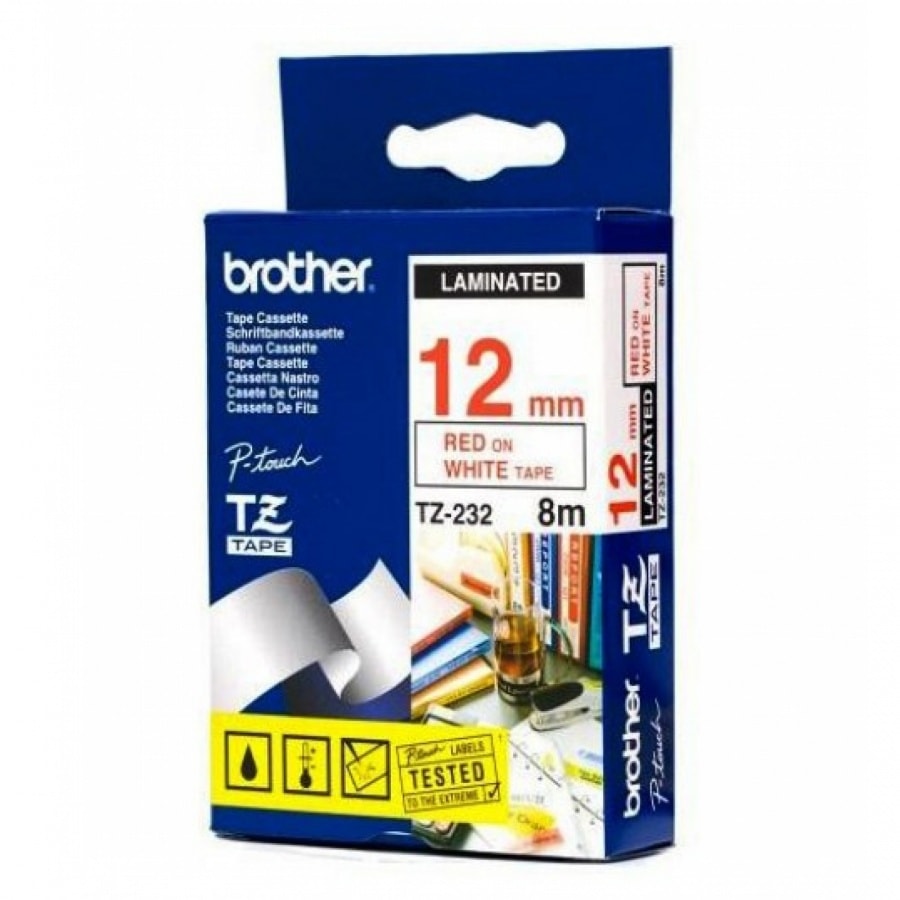 Fita Brother P-Touch Branco/Vermelho 12 mm x 8 m